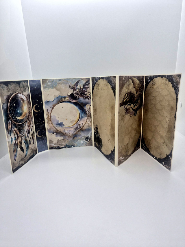Album photo réalisé à la main avec la méthode du scrapbooking sur le thème des dragons.