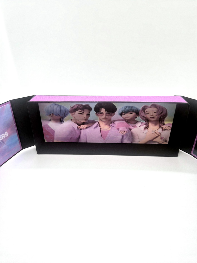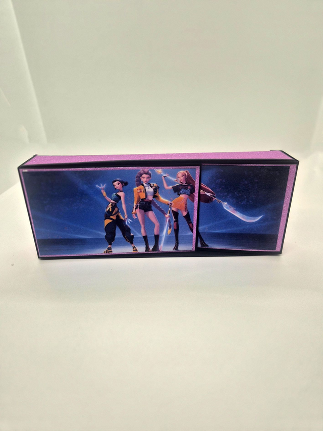 Boite à crayon réalisée à la main avec du carton épais à l'effigie de K-POP Demon Hunters
