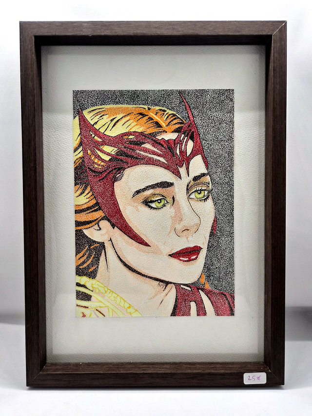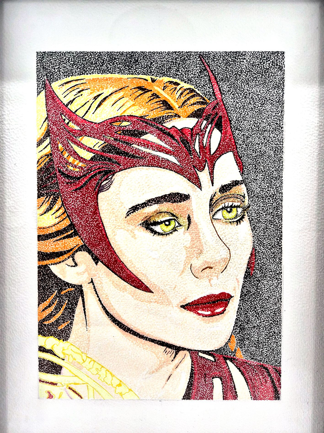 Le dessin est réalisé à la main, aux feutres avec la technique du pointillisme.