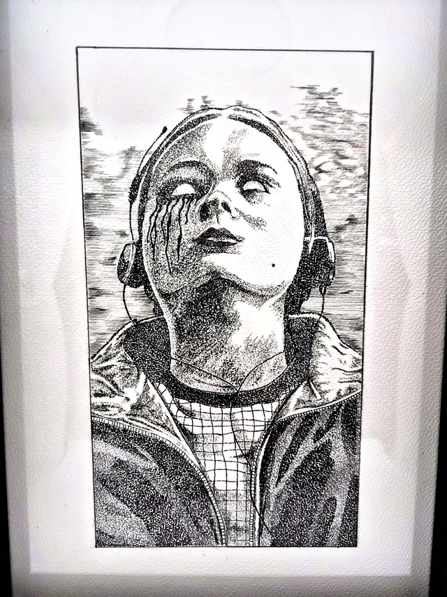 Le dessin est réalisé à la main, aux feutres avec la technique du pointillisme.