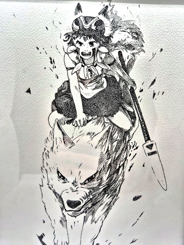 Le dessin est réalisé à la main, aux feutres avec la technique du pointillisme.