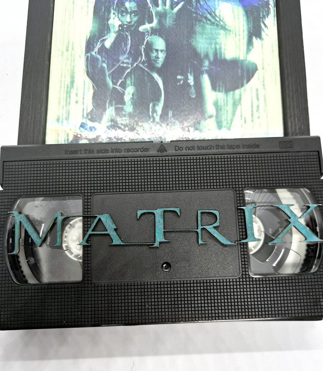 La cassette vidéo est collée directement sur le cadre.