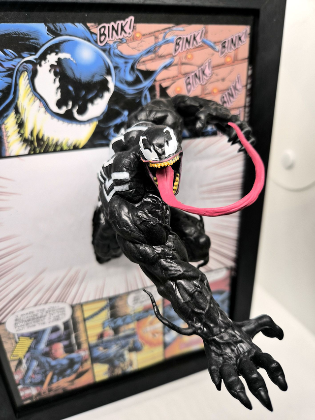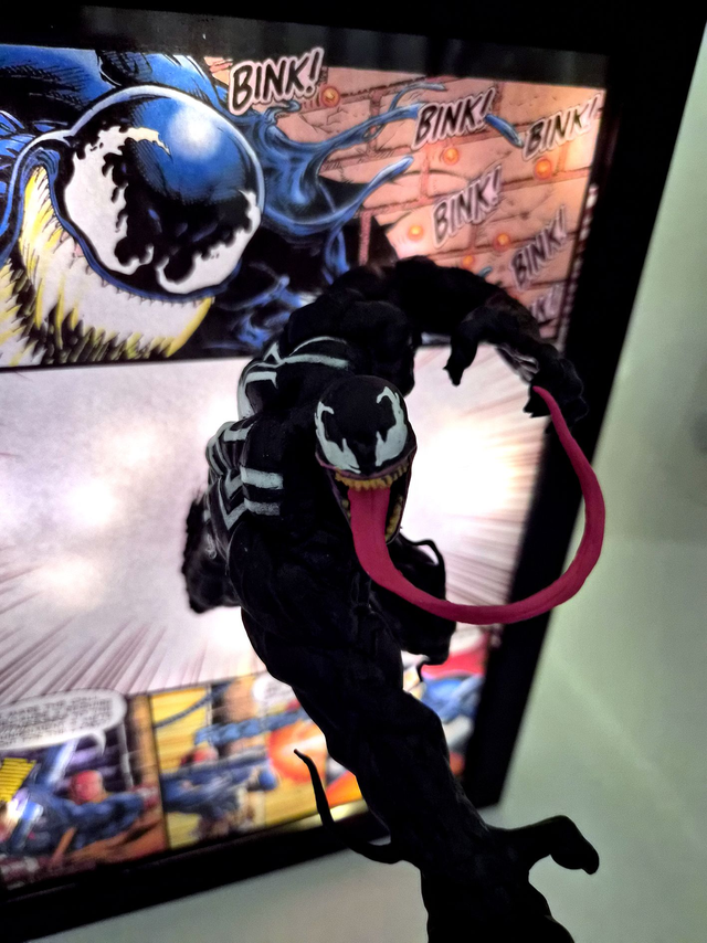 La figurine, placée sur le centre du cadre est directement collée sur la vitre.