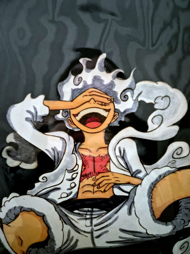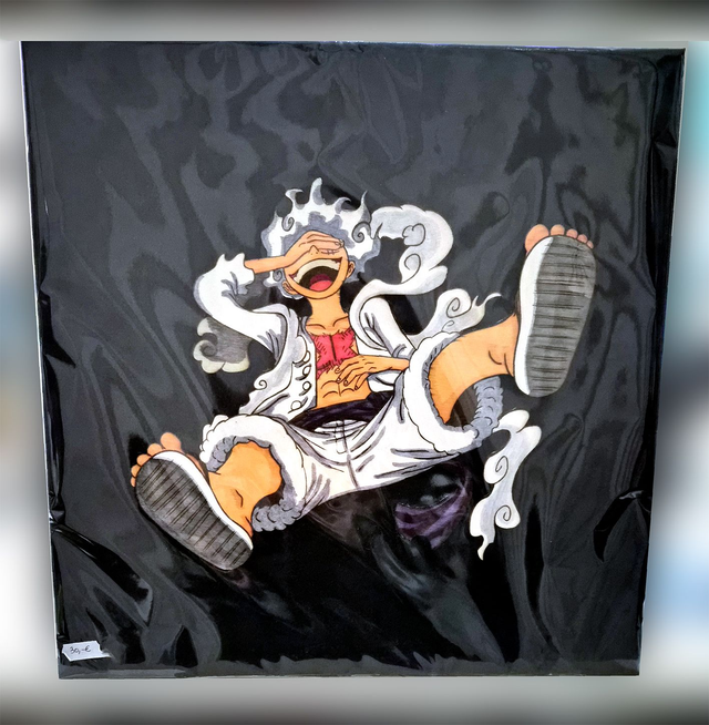 Toile de 40cmx40cm avec une gravure sur bois colorée de Luffy.