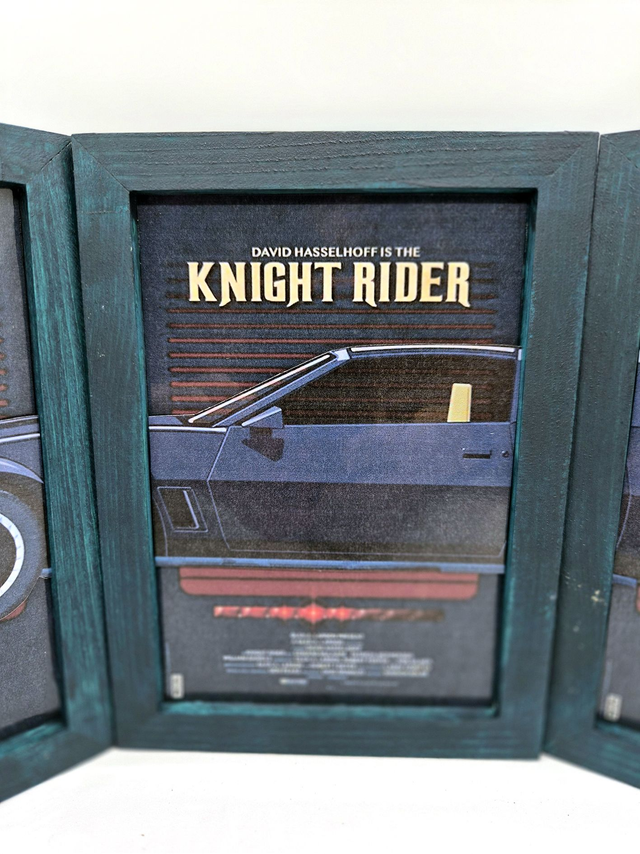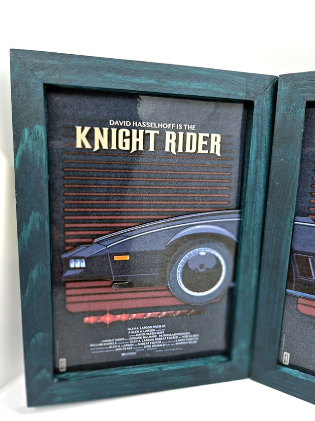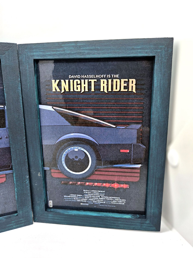 La voiture a été découpée et collée sur la vitre du cadre pour donner un effet 3D.